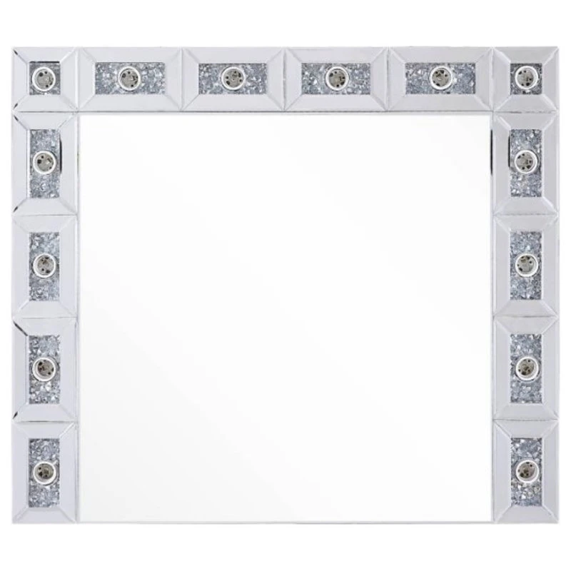 Wall Decor (LED), Mirrored & Faux DiamondsUndeniable magnificence with high-tech flair, this Noralie wall mirror is meant to become your favorite accent. Rectangular frame with 4mm beveled mirror and faux diamonds inlaid, this piece is as attractive as it is functional. Rimmed by “hollywood style” light bulbs, this design feature offers extra brightness during your morning routine.