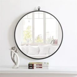 Elegant Furniture & Lighting Elegant Decor Rowan 24″ Round Metal Frame Hooked Mirror In Black