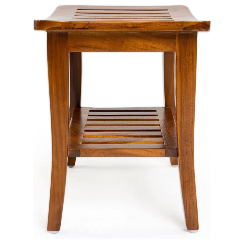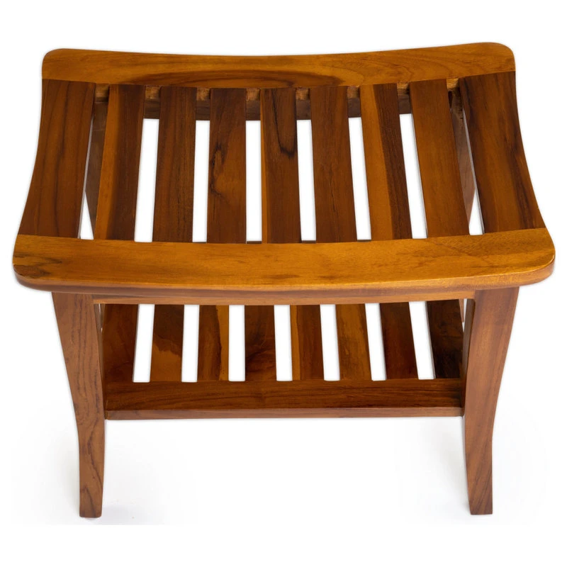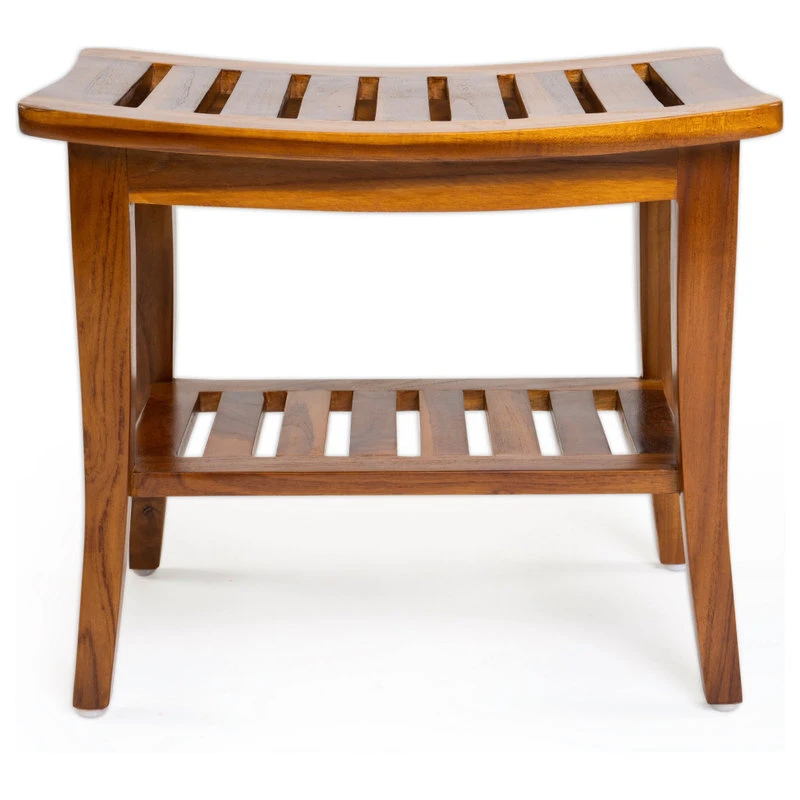 Sustainably harvested 100% solid teak wood shower bench naturally water resistant & durable (indoor or outdoor use). Our traditional teak shower bench is a stunning combination of modern design and ancient tradition. Our imported and environmentally-friendly solid teak wood is durable and naturally water resistant, so you will be able to enjoy your teak bath stool for years to come. This teak shower seat includes all stainless steel hardware for safety and stability. You’ll love using it as a perfect patio or pool accent or as a convenient seat in your bathroom shower. This shower bench is built with extra thick Grade A quality teak for a strong and stylish finish that will last for generations. As the world’s leading manufacturer of teak furniture and accessories, we offer different styles and sizes of teak shower benches, stools and patio seating.