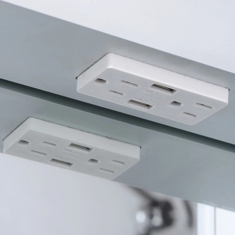 Includes 2 adjustable height 1/4″ thick (6mm) tempered glass shelves that are 3 1/8″ (80mm) deep. Wall mounting hardware included. Hardwire connection to power without a plug. High quality aluminum cabinet body covered with mirrors inside and out. Includes electrical outlet with two standard plugs and 2 USB plugs. The defogger and the light turn on/off together on the same switch. So if the light is on, the defogger will be on as well.