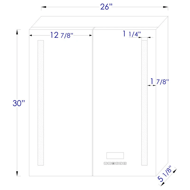Energy efficient 6000k LED lighting strip. Double swinging door with mirror on both sides. Soft self closing door hinges by the top quality DTC brand. UL approved electrical components. Meets IP44 waterproof standard.