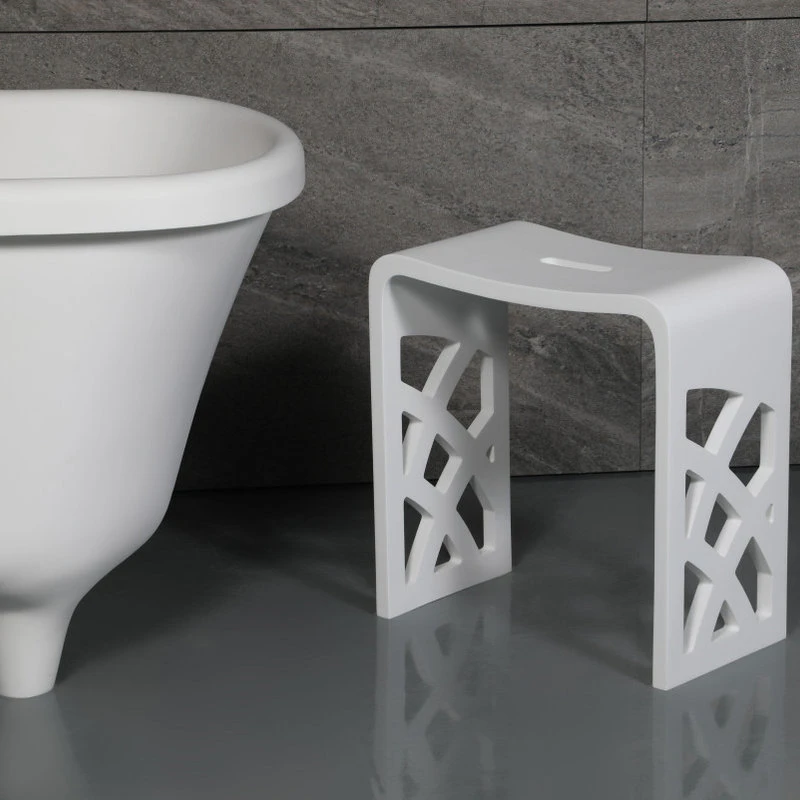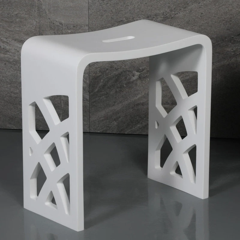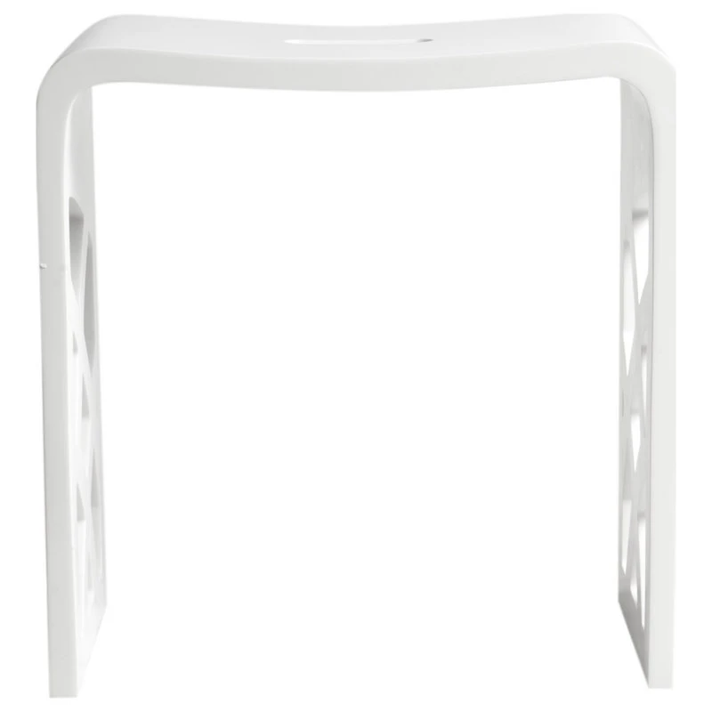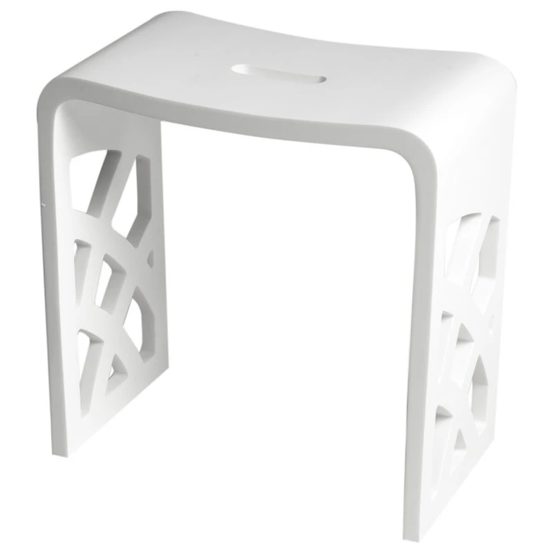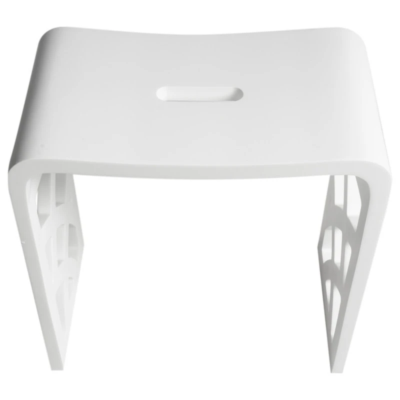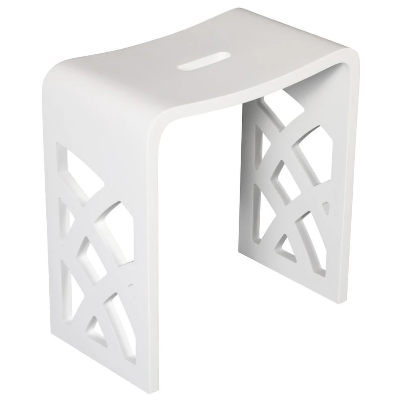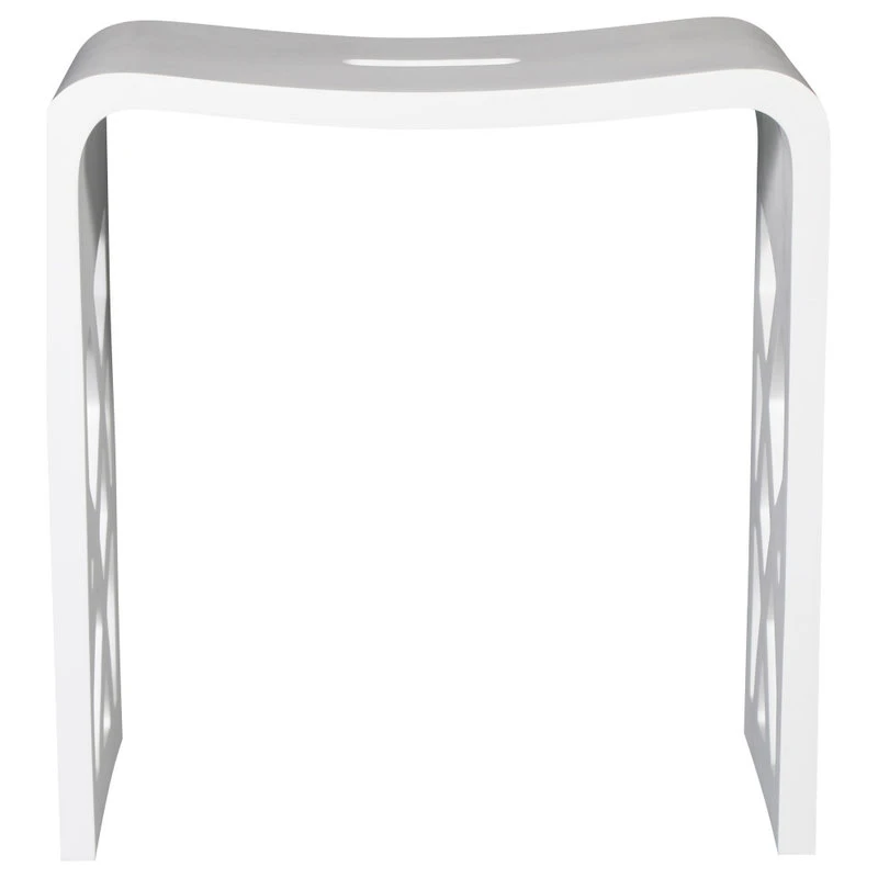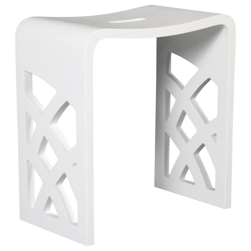 - Designed as a matching accessory bench to any white solid surface tub with a matte finish.