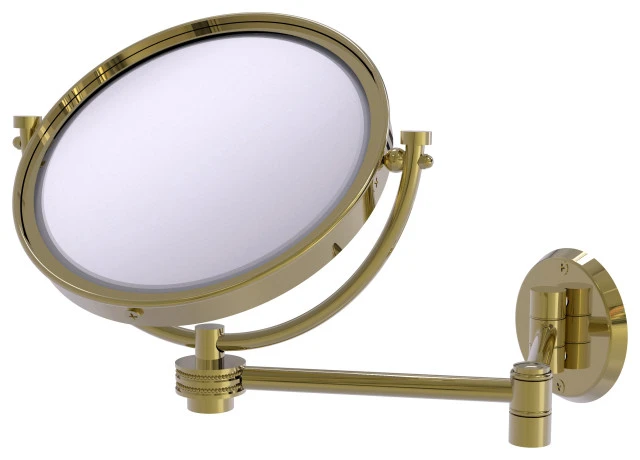 Add this stylish makeup mirror to your bathroom decor for an elegant touch. Makeup and shaving mirror pivots and tilts to allow for complete versatility in viewing angles while extending up to 14 Inches. Mirror is made from the finest solid brass materials. 8 inch double faced mirror features clear magnification on one side.
