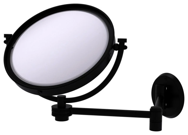 Add this stylish makeup mirror to your bathroom decor for an elegant touch. Makeup and shaving mirror pivots and tilts to allow for complete versatility in viewing angles while extending up to 14 Inches. Mirror is made from the finest solid brass materials. 8 inch double faced mirror features clear magnification on one side.