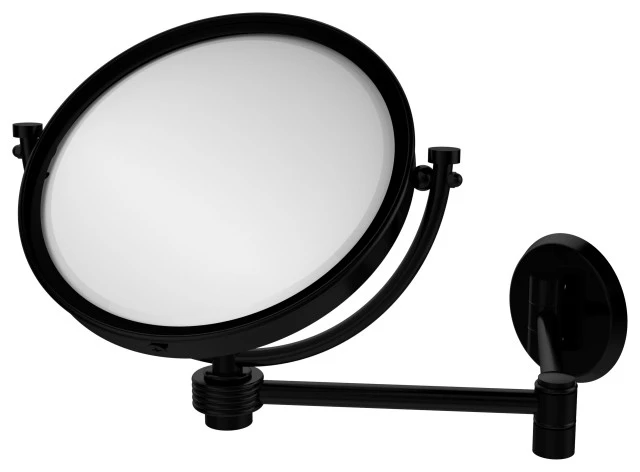 Add this stylish makeup mirror to your bathroom decor for an elegant touch. Makeup and shaving mirror pivots and tilts to allow for complete versatility in viewing angles while extending up to 14 Inches. Mirror is made from the finest solid brass materials. 8 inch double faced mirror features clear magnification on one side.