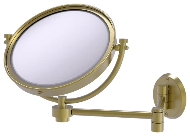 Add this stylish makeup mirror to your bathroom decor for an elegant touch. Makeup and shaving mirror pivots and tilts to allow for complete versatility in viewing angles while extending up to 14 Inches. Mirror is made from the finest solid brass materials. 8 inch double faced mirror features clear magnification on one side.