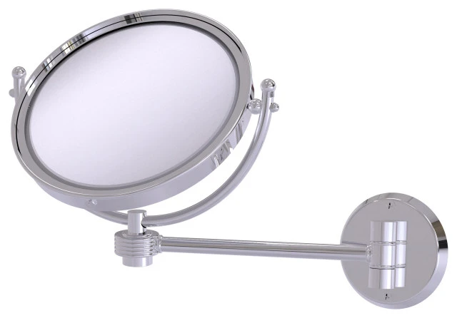 Add this stylish makeup mirror to your bathroom decor for an elegant touch. Makeup and shaving mirror pivots and tilts to allow for complete versatility in viewing angles while extending up to 7 Inches. Mirror is made from the finest solid brass materials. 8 inch double faced mirror features clear magnification on one side.