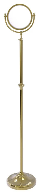 Elegantly and efficiently designed, this floor standing 2 sided magnification mirror is an easy solution for your daily make-up or shaving routine. The dual-sided mirror features a clear magnification for those close-up applications on one side and a 1x magnification on the opposite side for a quick all around check at any angle. With classic accents, this free-standing vanity mirror is the crowning touch to your bathroom accessories.