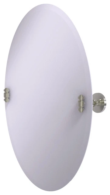 - Frameless 21 x 29 inch oval mirror with beveled edge