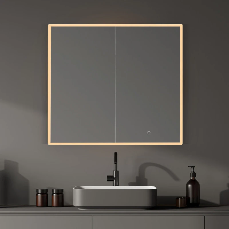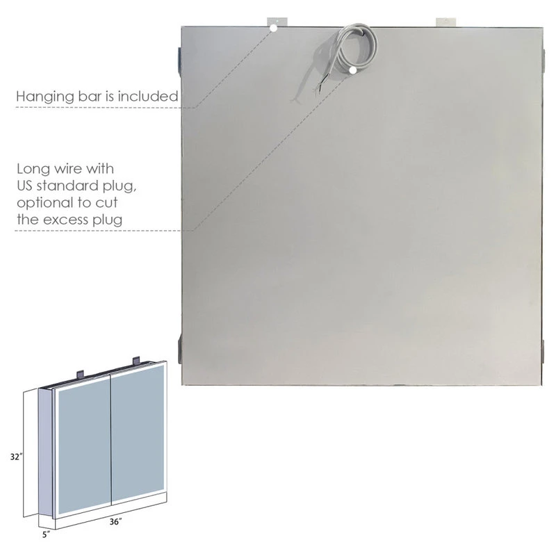 Carsoli Rectangular Shape 36″ Frameless Clear Glass Surface-Mount/Recessed LED Sensor Touch Lighted Mirror Medicine Cabinet, with dual mounting options, adjustable shelving, and adaptable LED lighting, our Carsoli Medicine Cabinet offers the ultimate in customization. Energy-efficient LED lighting provides optimal illumination for grooming tasks and makeup application. Spacious storage behind the double-sided mirror doors helps keep your washroom essentials and toiletries out of sight.