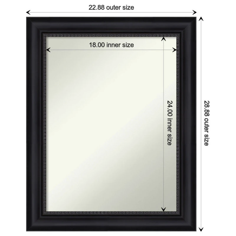 - MIRROR DETAILS: This mirror features premium glass for a clear, undistorted image and has a non-beveled surface to maximize the viewing area. The overall size of this wall mirror measures 23 x 29 inches, including the frame. Its reflective area measures 18 x 24 inches.