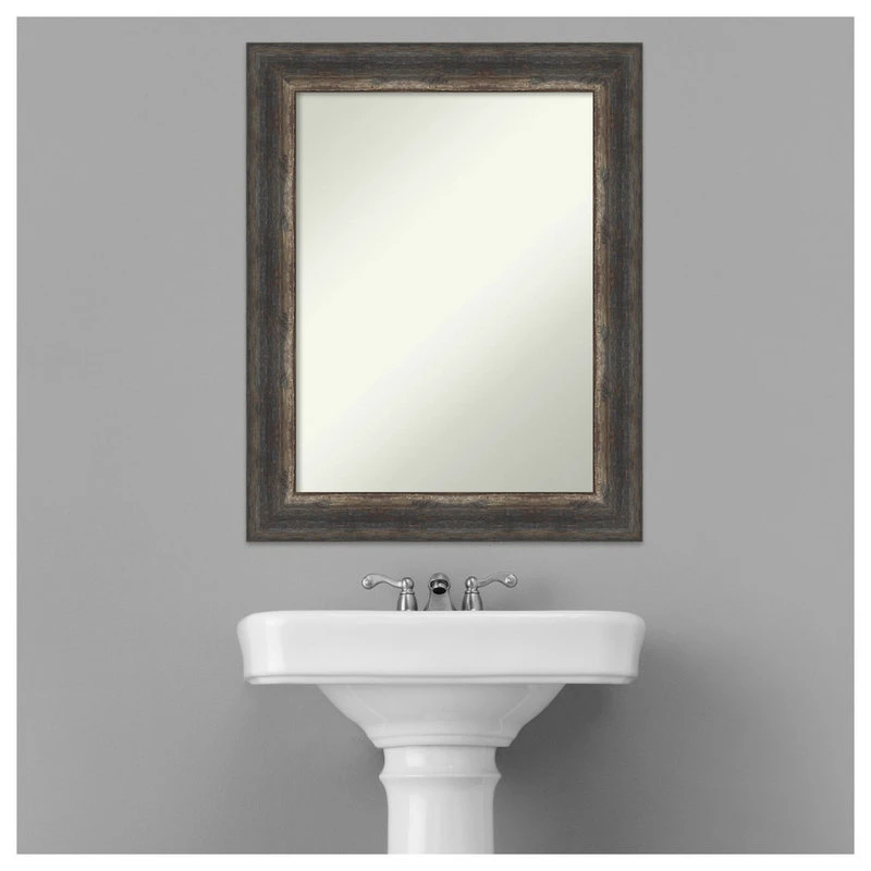 Give your bathroom the finishing touch with this Non-Beveled Wall Mirror framed with the Bark Rustic Char frame. Individually made using traditional custom framing techniques, it has the quality you would expect from your local frame shop. It holds its value with premium finishing that can be appreciated up close.
