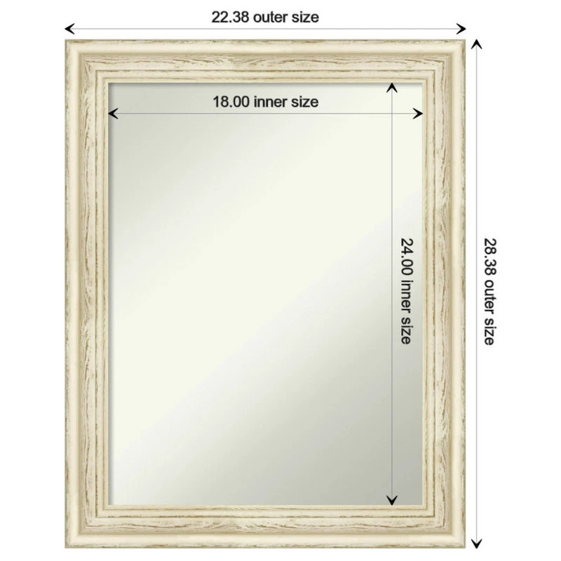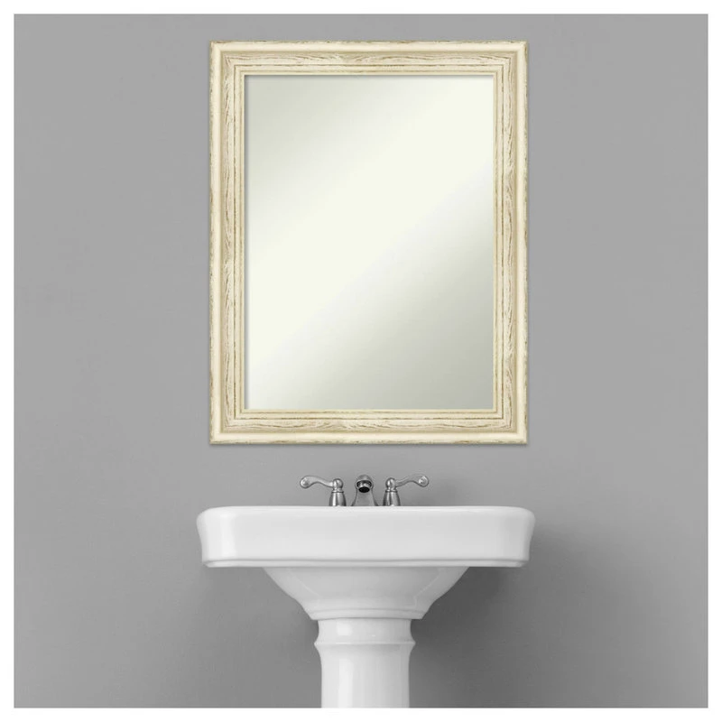 Give your bathroom the finishing touch with this 100% real wood Non-Beveled Wall Mirror framed with the Country White Wash frame. Individually made using traditional custom framing techniques, it has the quality you would expect from your local frame shop. It holds its value with premium finishing that can be appreciated up close.