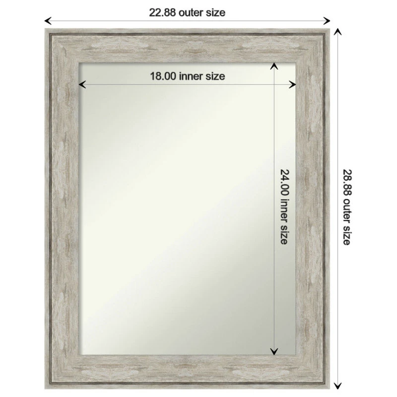 - MIRROR DETAILS: This mirror features premium glass for a clear, undistorted image and has a non-beveled surface to maximize the viewing area. The overall size of this wall mirror measures 23 x 29 inches, including the frame. Its reflective area measures 18 x 24 inches.