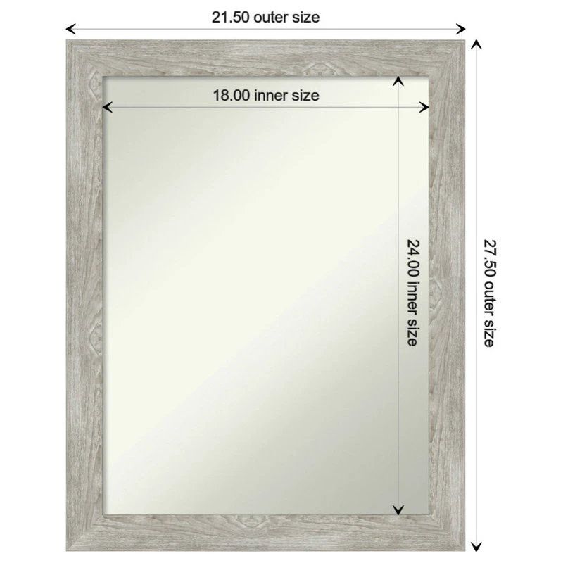 - MIRROR DETAILS: This mirror features premium glass for a clear, undistorted image and has a non-beveled surface to maximize the viewing area. The overall size of this wall mirror measures 21.5 x 27.5 inches, including the frame. Its reflective area measures 18 x 24 inches.