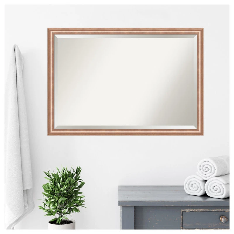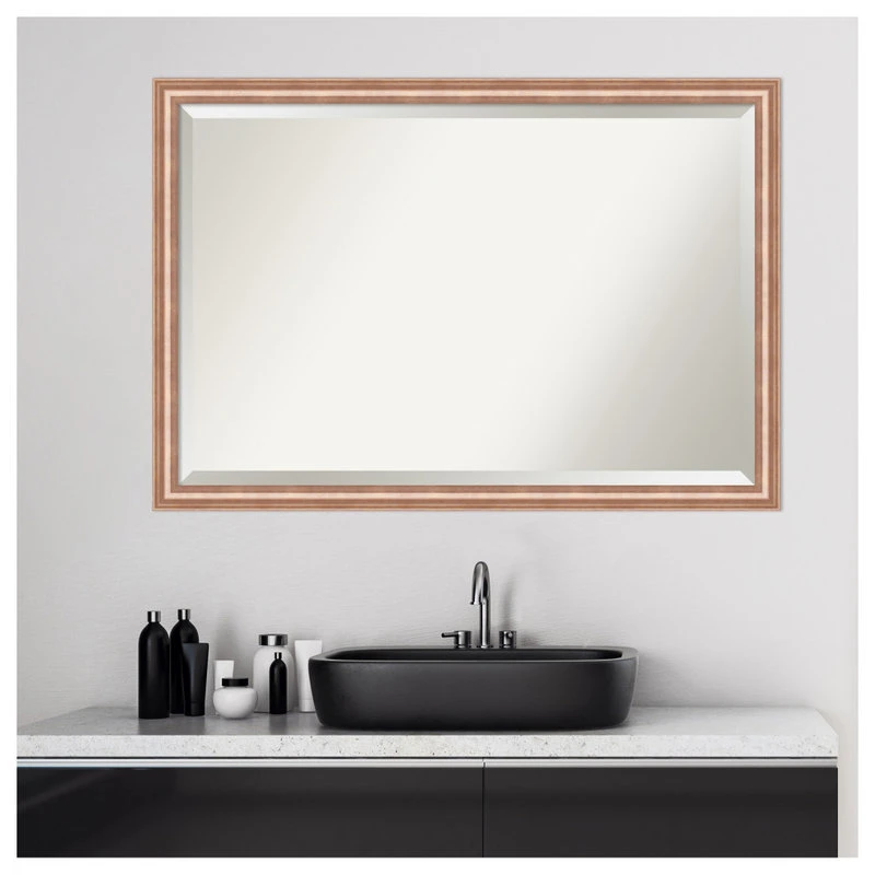 Give your bathroom the finishing touch with this 100% real wood Beveled Wall Mirror framed with the Harmony Rose Gold frame. Individually made using traditional custom framing techniques, it has the quality you would expect from your local frame shop. It holds its value with premium finishing that can be appreciated up close.