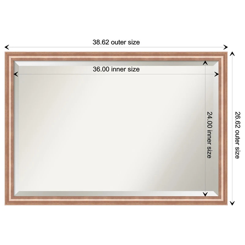 - MIRROR DETAILS: This mirror features premium glass for a clear, undistorted image and is finished with a beveled edge to give the glass a decorative touch. The overall size of this wall mirror measures 38.5 x 26.5 inches, including the frame. Its reflective area measures 36 x 24 inches.