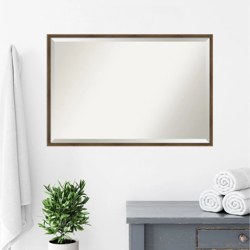 Give your bathroom the finishing touch with this 100% real wood Beveled Wall Mirror framed with the Lucie Light Bronze frame. Individually made using traditional custom framing techniques, it has the quality you would expect from your local frame shop. It holds its value with premium finishing that can be appreciated up close.