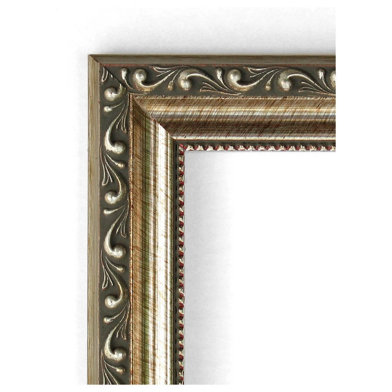 - WOOD FRAME DETAILS: The Parisian Silver Frame is an ornate, warm silver frame with dark pewter patina, accented by raised leaf pattern on the outer edge and fine beading on the inner edge. The frame is 1.25 in. wide and stands 1 in. off the wall.