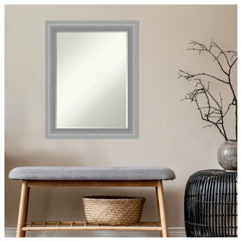 - MIRROR DETAILS: This mirror features premium glass for a clear, undistorted image and is finished with a petite 1/2-inch beveled edge which is more delicate than a traditional bevel. The overall size of this wall mirror measures 22.5 x 28.5 inches, including the frame. Its reflective area measures 18 x 24 inches.