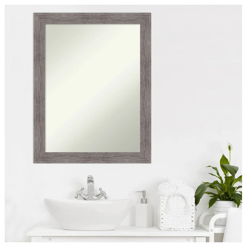 Give your bathroom the finishing touch with this Non-Beveled Wall Mirror framed with the Pinstripe Plank Grey Narrow frame. Individually made using traditional custom framing techniques, it has the quality you would expect from your local frame shop. It holds its value with premium finishing that can be appreciated up close.