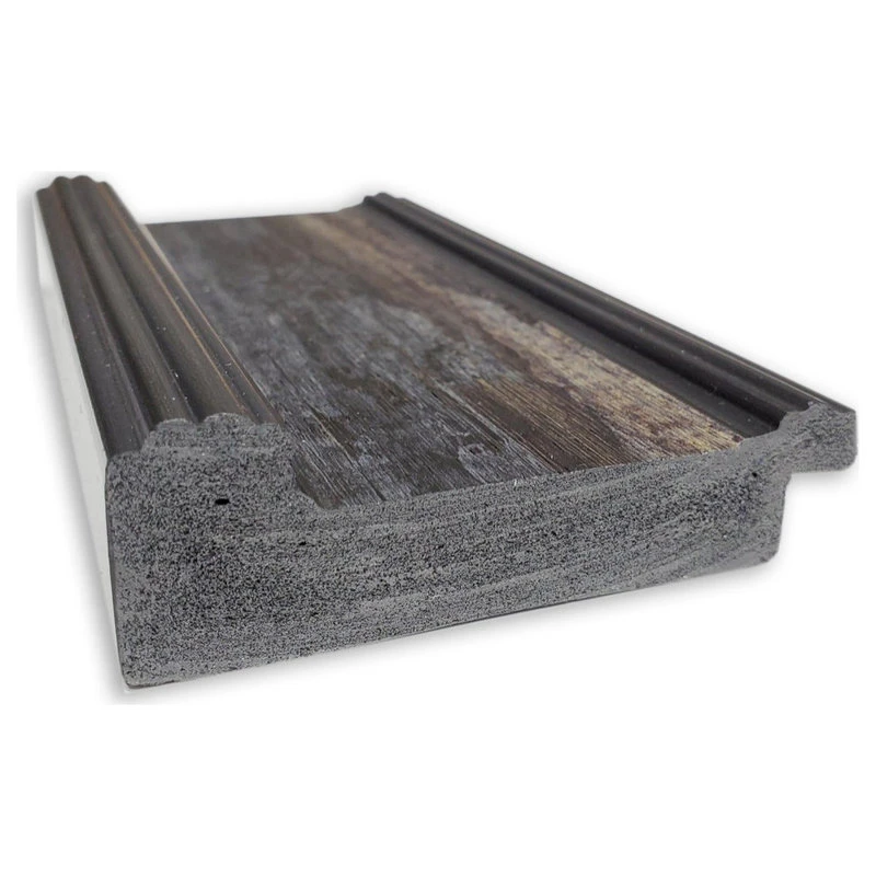 - FRAME DETAILS: The Rail Rustic Char Frame is a black, grey, and bronze-toned frame that is reminiscent of charred wood with ridged edge panels finished in dark shiny pewter. The frame is 3.25 in. wide and stands 1 in. off the wall.