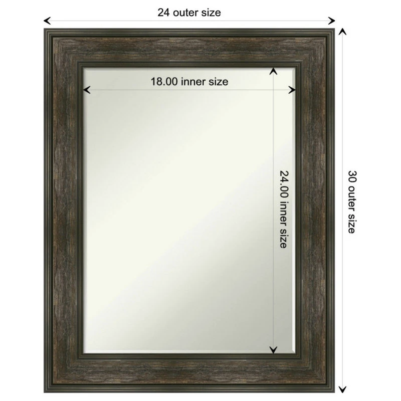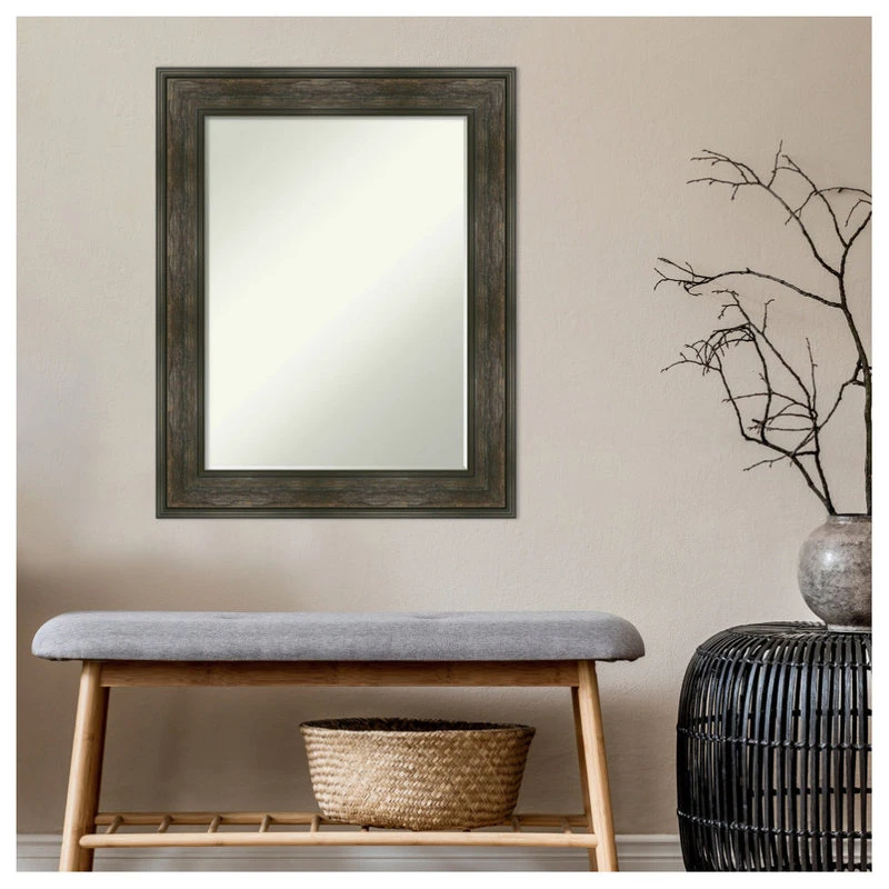Give your bathroom the finishing touch with this Petite Bevel Wall Mirror framed with the Rail Rustic Char frame. Individually made using traditional custom framing techniques, it has the quality you would expect from your local frame shop. It holds its value with premium finishing that can be appreciated up close.