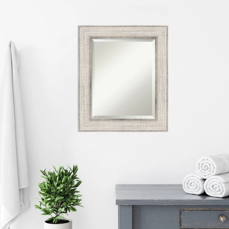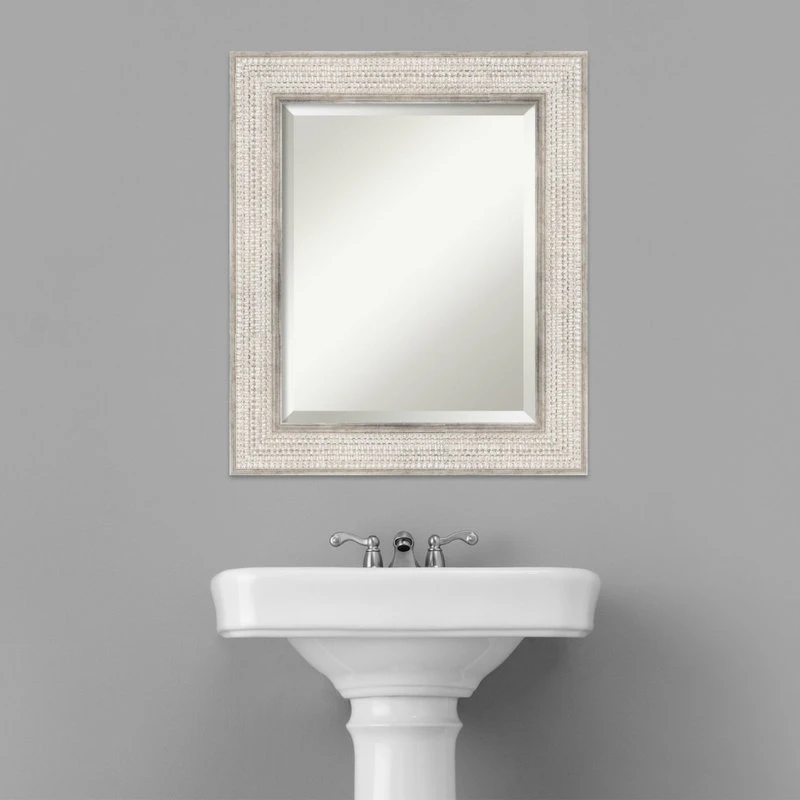 Give your bathroom the finishing touch with this 100% real wood Beveled Wall Mirror framed with the Trellis Silver frame. Individually made using traditional custom framing techniques, it has the quality you would expect from your local frame shop. It holds its value with premium finishing that can be appreciated up close.