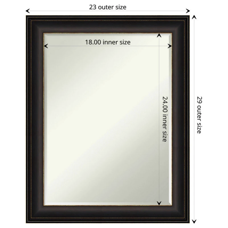 - MIRROR DETAILS: This mirror features premium glass for a clear, undistorted image and is finished with a petite 1/2-inch beveled edge which is more delicate than a traditional bevel. The overall size of this wall mirror measures 22.5 x 28.5 inches, including the frame. Its reflective area measures 18 x 24 inches.