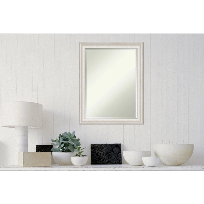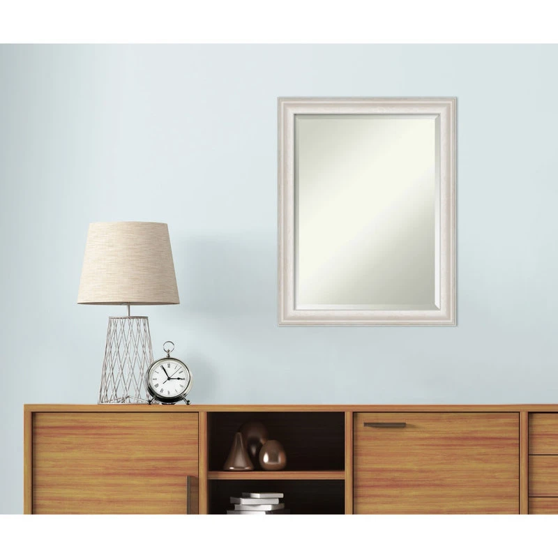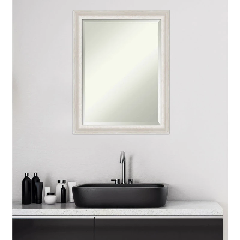 Give your bathroom the finishing touch with this Beveled Wall Mirror framed with the Trio White Wash Silver frame. Individually made using traditional custom framing techniques, it has the quality you would expect from your local frame shop. It holds its value with premium finishing that can be appreciated up close.