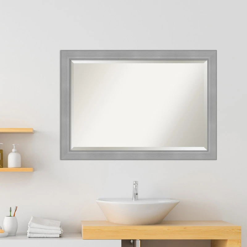 Give your bathroom the finishing touch with this Beveled Wall Mirror framed with the Vista Brushed Nickel frame. Individually made using traditional custom framing techniques, it has the quality you would expect from your local frame shop. It holds its value with premium finishing that can be appreciated up close.
