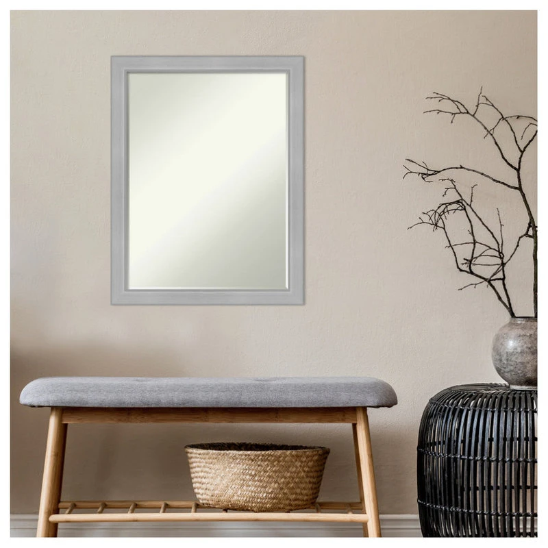 Give your bathroom the finishing touch with this Petite Bevel Wall Mirror framed with the Vista Brushed Nickel Narrow frame. Individually made using traditional custom framing techniques, it has the quality you would expect from your local frame shop. It holds its value with premium finishing that can be appreciated up close.