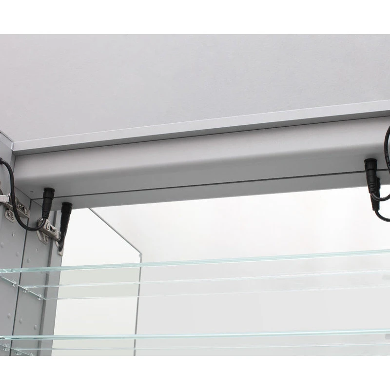 - 5mm Silver Mirrored Glass, 90-Degree Soft Close Hinges, 8mm Glass Shelves
