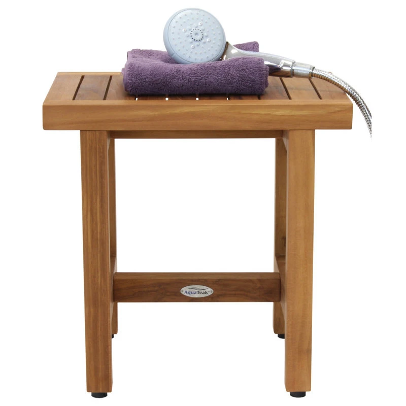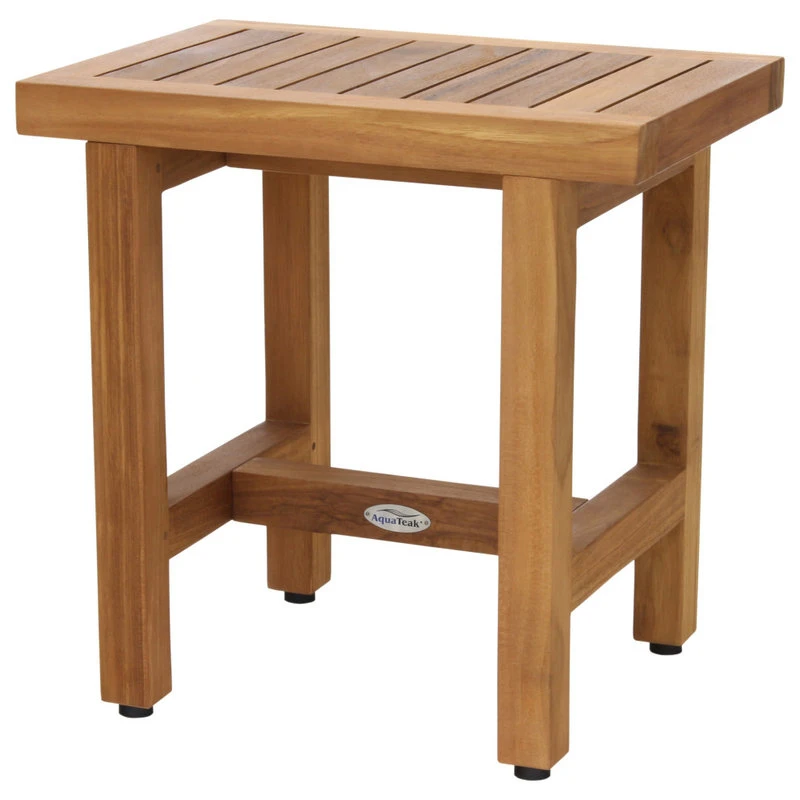 When you need a touch of practicality and luxury at the same time, AquaTeak is your solution. We sell incredible pieces of teak furniture like this teak shower bench. We designed this bench to easily fit into compact spaces and bring undeniable luxury to wherever it may be. Our teak wood comes straight from Indonesia and delivers beautiful color and luxurious texture. You won’t have to worry about moisture ruining it, because teak wood naturally repels water. Its simple design is sturdy, and its rubber feet guarantee stability. Invest in furniture that will last for years and enjoy our five year limited warranty!