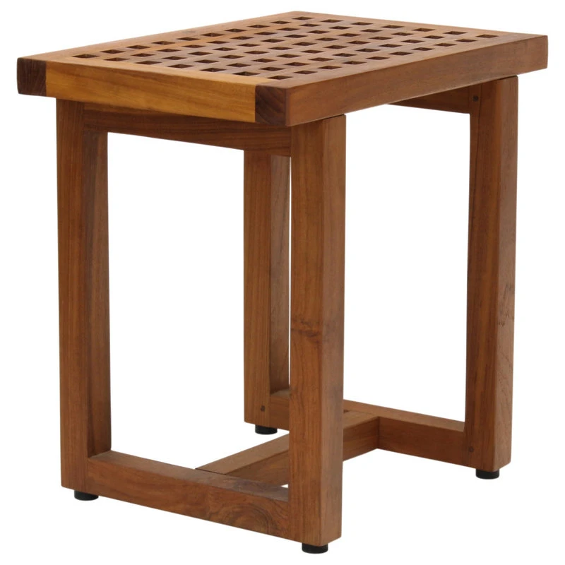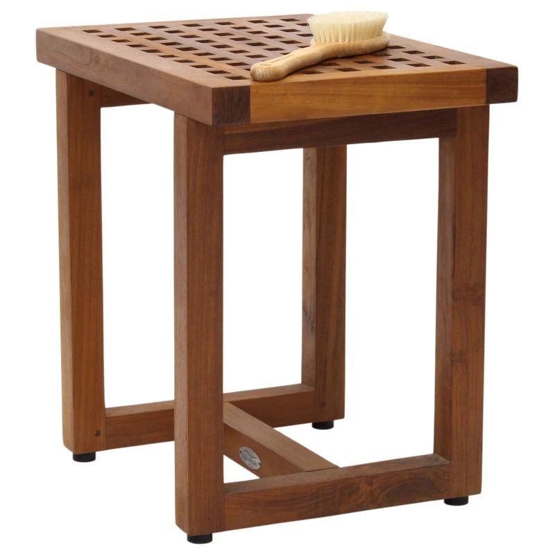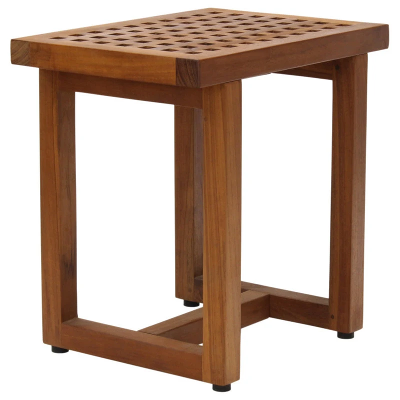 This grate style teak shower seat is perfect for your shower or anywhere in your bathroom. The handcrafted solid teak shower stool will add a natural elegance to your home and is both durable and naturally water resistant. Ideal as a teak bath bench or outdoor accent piece, the convenient design is highly versatile, and can be used almost anywhere. Your teak shower stool also comes with all stainless steel hardware and includes rubber padded feet for safety and stability in any location. (Some assembly required)