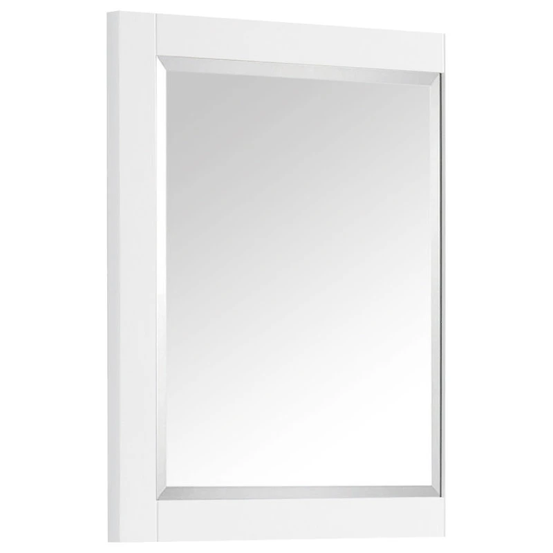 The Avanity 24 in. X 30 in. poplar wood framed mirror features a contemporary white finish and a simple clean design. It matches with several collections (Brooks, Modero) for a coordinated look and includes mounting hardware for easy installation. The mirror hangs horizontally and vertically.