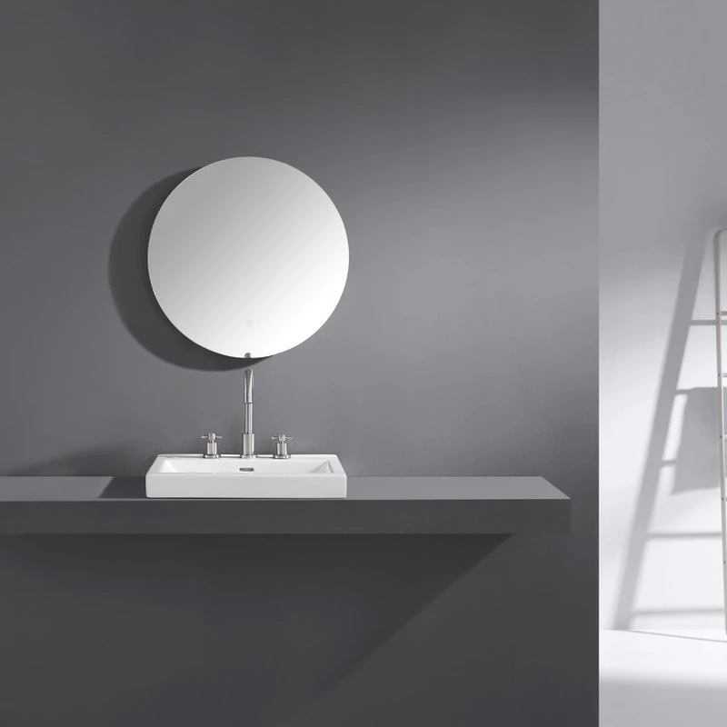 Enjoy lush illumination for personal grooming with this circular LED mirror. LED lighting around its perimeter provides just the right amount of illumination. Anti-fog and dimmable switches offers extra luxuary, and the frameless design is ideal for any contemporary bathrooms. This LED mirror comes in 2 sizes – 24 in. and 30 in.