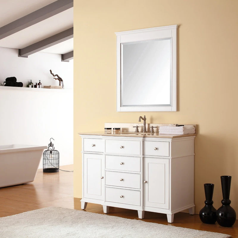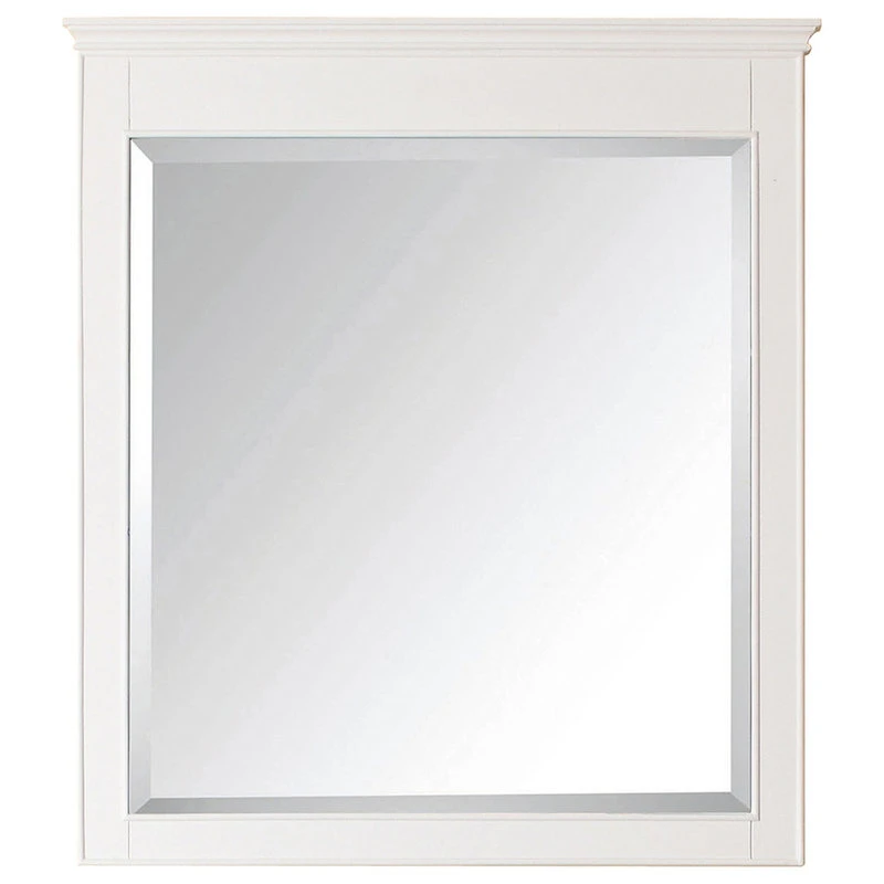The Windsor 34 in. X 38 in. Poplar framed mirror features a white finish with simple lines. It matches the Windsor vanities for a coordinated look and includes mounting hardware that makes leveling easy. The mirror can be hanged vertically.