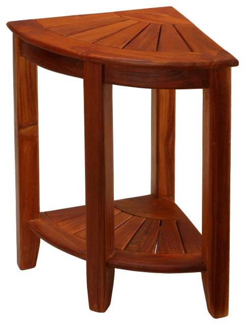 The Elana Tall corner spa stool makes the most of a small space. The 24 inch height makes it perfect for your shower, use this as a stool or a table. Also features a bottom shelf to keep all your toiletries handy. Made of responsibly harvested solid teak wood (tectona grandis), it is naturally resistant to mold and mildew and is outdoor friendly. Can also be used as a corner end table for outdoor or an everyday living space.
