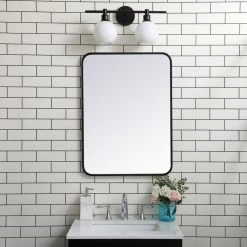 Elegant Furniture & Lighting Ellis Soft Corner Metal Rectangular Mirror, Black, 22″x30″