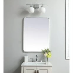 Elegant Furniture & Lighting Soft Corner Metal Rectangular Mirror 24X32″, White