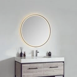 Vinnova Emilia 28″ Round Bathroom/Vanity Framed Wall Mounted Mirror, Brushed Gold
