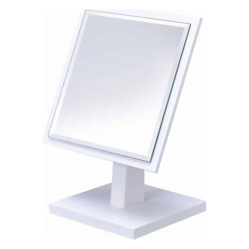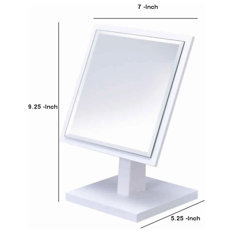 Add a warm and natural element to your interior space with this Square Makeup Mirror. Fashioned from wood in crisp white finish, this mirror is sure to blend well with a variety of color schemes. The mirror features a square silhouette and it rests on pedestal base. The mirror is perfect to be used for cosmetic counters, scarf and hat store counters and eye doctors offices or sun glasses stores.