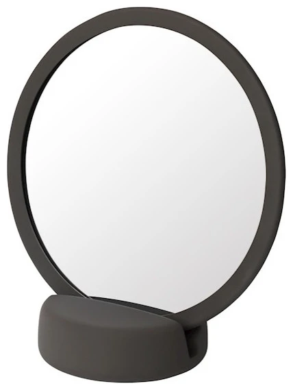 Vanity Mirror – SONO reflects your best side. The SONO Vanity Mirror, with 5x magnification makes your daily routing easier. The mirror can be used on the countertop in its accompanying holder, or can be taken out of the holder for hand-held use. The Vanity Mirror is just one element of the popular blomus SONO bath line which features gentle shapes, perfectly rounded edges and a soft surface with an exquisite silk matte finish. The new SONO range includes a soap dispenser, tumbler, tray, storage box, shower squeegee, vanity mirror, pedal bin wastebasket and toilet brush in a variety of colors including: Magnet (charcoal), Satellite (taupe), Moonbeam (cream), Microchip (light grey), Tarmac (olive), and Ashley Blue. The SONO bathroom collection is exceedingly functional, but at the same time reflects the brand’s aesthetic vision creating a calming and harmonious setting for the everyday bath routine.