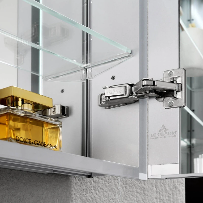 - High-End hardware brand BLUM 170 degree wide-open soft close hinges and provides strong support for large medicine cabinet.