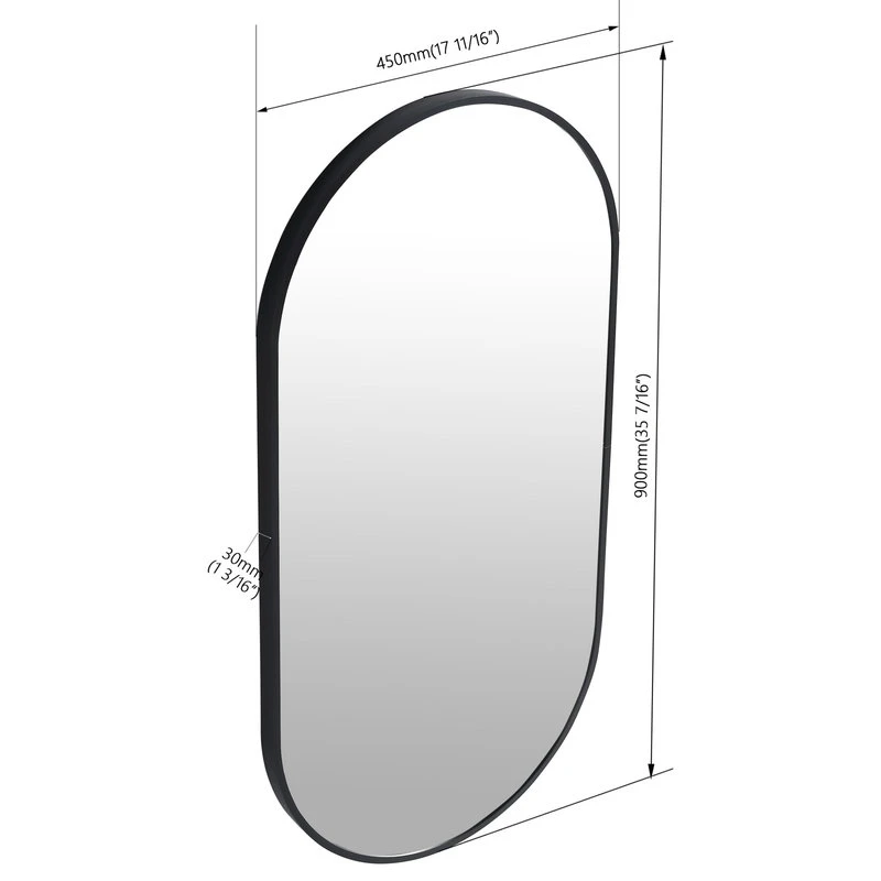 - Oval Mirror: 17 11/16 x 35 7/16 Inches