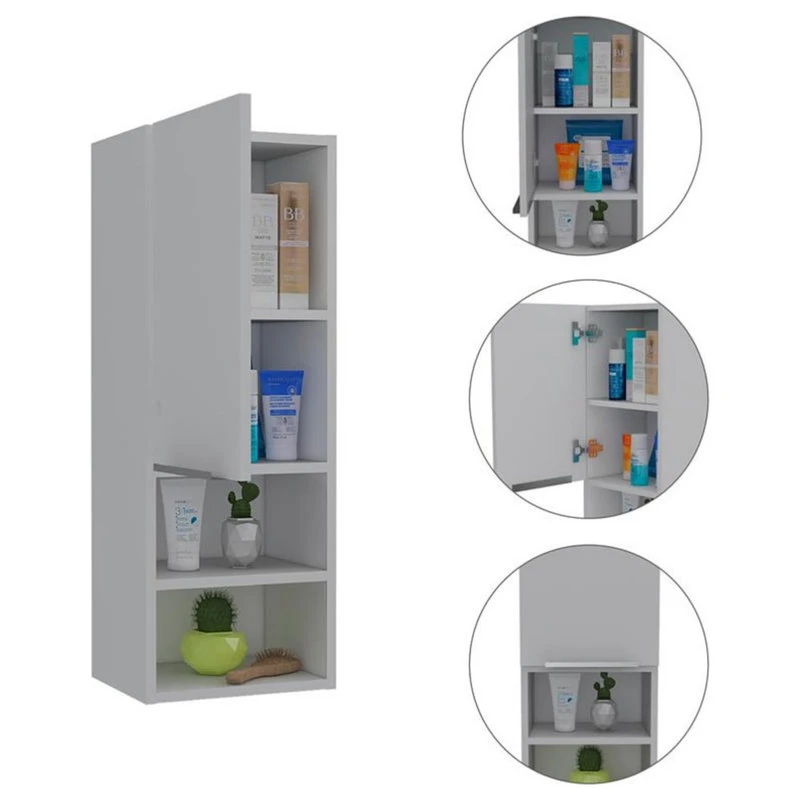 The Bowery Hill Wall Cabinet features 2 concealed shelves and 2 open shelves. Providing you a very modern and attractive storage option for your bathroom. With a modern stylish design and white finish, this cabinet is made to last and withstand the conditions of humidity in a bathroom. Ready and easy to assemble for your convenience.