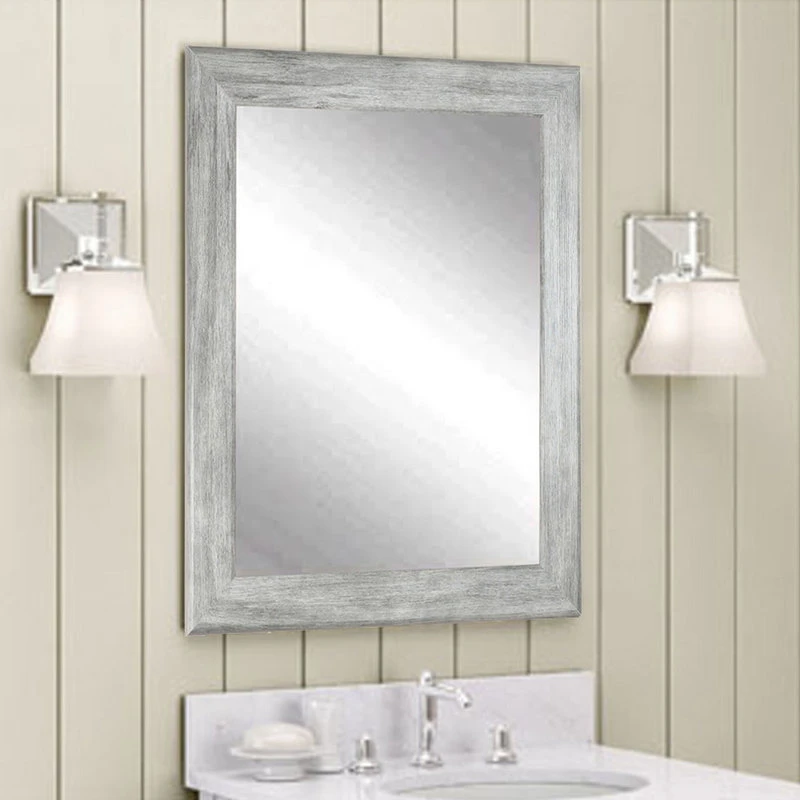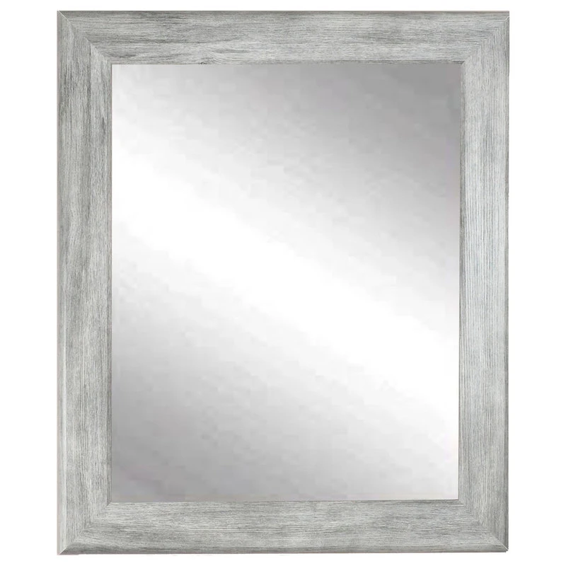 This weathered mirror features a gray barnwood finish. The 3 frame features a rounded edge profile with a slight grain texture creating a unique farmhouse feel. This wall or vanity mirror is an impressive accessory to hang in a bedroom, bathroom or living space. Four hooks are included allowing for a vertical or horizontal wall installation.