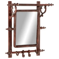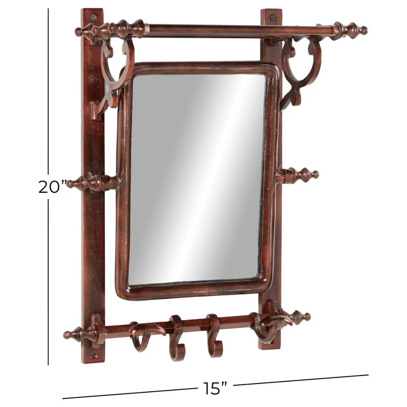 Brimfield & May Copper Bathroom Wall Rack With Hooks And Rectangular Mirror, 15″x20″