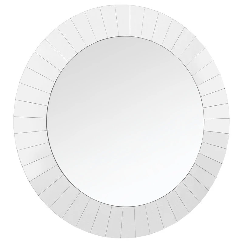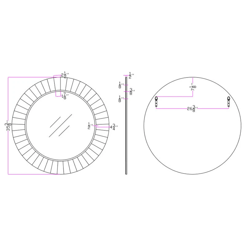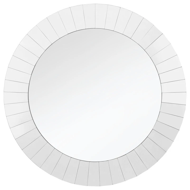 The Daylight Round Mirror has a beautiful sun-like design featuring a fringe of rectangular mirrors encircling the main center mirror. The geometric edge makes this mirror an object to look at in addition to being functional. Its contemporary aesthetic will blend with bohemian, coastal and modern decor or in any room you would like to see more. This 36 x 36 mirror has a high quality silver backing. Ready to hang either vertically or horizontally with pre-attached hanging mounts.
